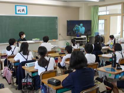 校長先生からのお話を聞きました。校長先生からは,「読書のすすめ」がありました。図書室に掲示されている先生たちのおすすめ図書についての紹介もありました。