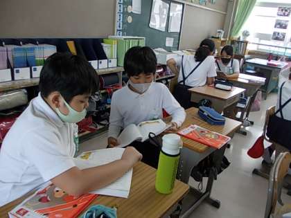 ペアで自分の考えを交流する活動を積極的に取り入れています。互いの距離に気を付けながら,積極的に自分の考えを相手に話したり,しっかり相手の意見を聞こうとしたりする姿,すばらしいです♪