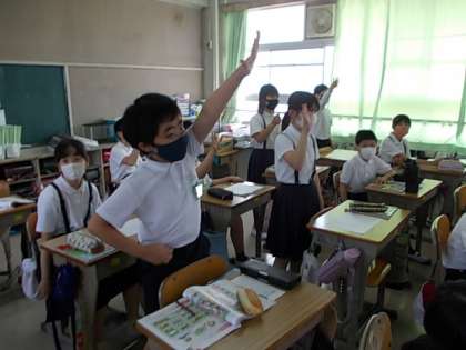 6月7日(月) 5年生外国語「ヒントじゃんけん」♪