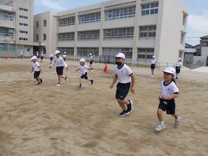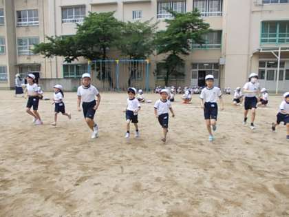 はじめての「20mシャトルラン」は,6年生といっしょに行いました。6年生のお姉さん,お兄さんが伴走してくれました。