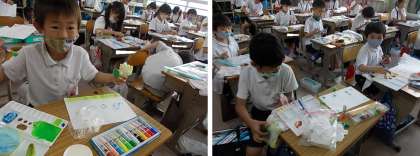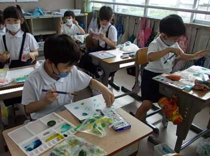 6月7日(月) 2年生図工「野菜スタンプ,たのしいね」♪