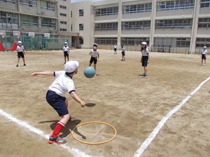 6月7日(月) 5年生体育「ねらえホームラン!」♪