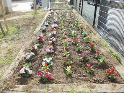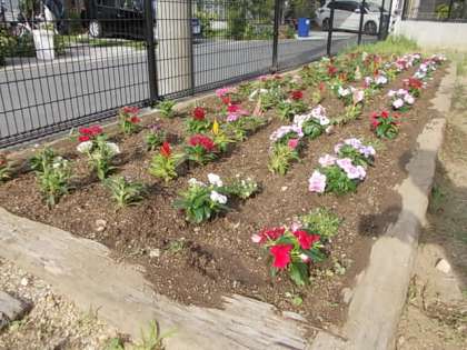 長い工事期間,手をつけることができなかったPTA花壇でしたが,ついに本日,実行委員のみなさまがきれいな花を植えてくださいました。きれいな花を見ているだけで心がほっとしますね。