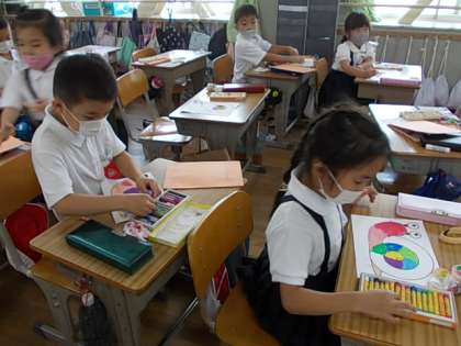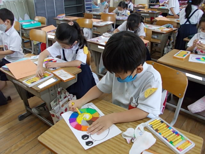 6月8日(火) 1年生図工「カラフルかたつむり」♪