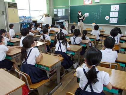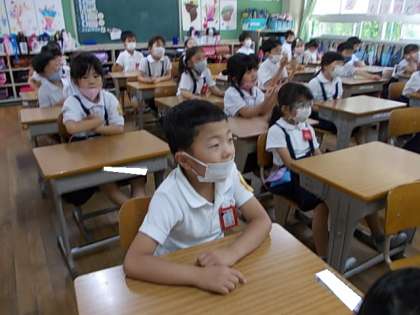 先生が1〜9までの数字を示します。子どもたちは,合わせて10になる組み合わせの数を答えます。みんな,楽しそうに活動しています♪