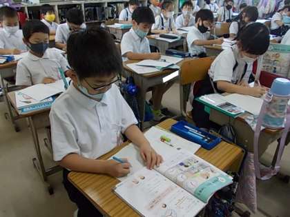家を出た時刻,学校についた時刻から,通学にかかった時間を考えています。