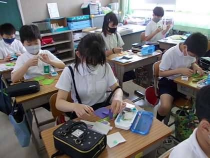 6月9日(水) 5年生家庭科「ボタンをつけてみよう」♪