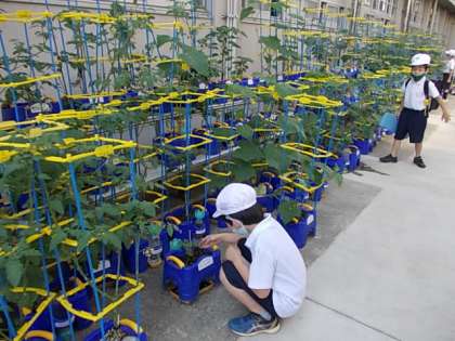 毎日,心を込めて水やりをしてくれていますので,夏野菜がどんどん成長しています♪