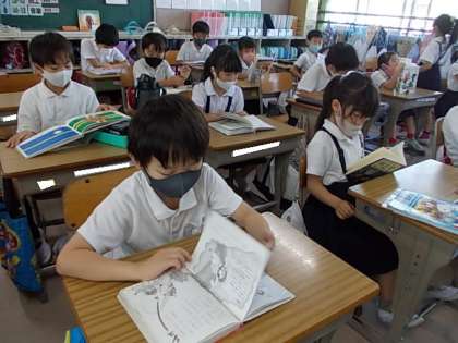 今日も朝のさわやかな教室で,静かに読書に取り組んでいます♪