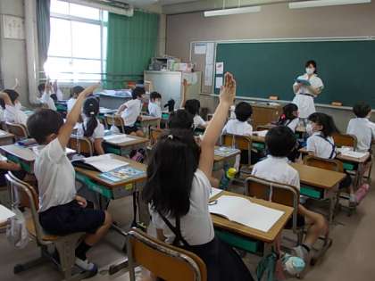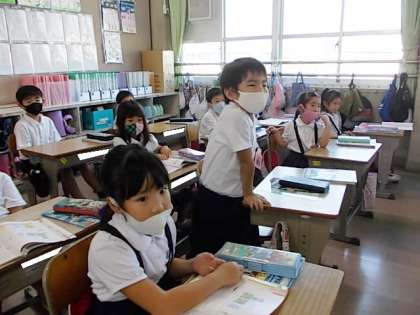 大きな数の学習です。先生がテレビモニターに映しだす3けたの数を読みます。みんな,生き生きと学習しています♪