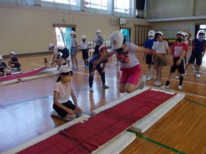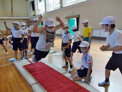 6月23日(水) 4年生体育「立ち幅跳びにチャレンジ」♪