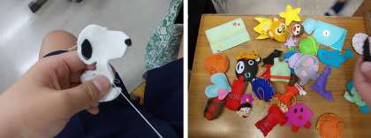 裁縫がどんどん上手になっています。先日まで取り組んできた小物入れに続き,マスコットづくりにチャレンジしています。細かい作業にも集中して取り組めています。