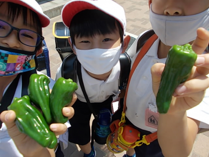 こんなに立派なピーマンができました。ピーマンの肉詰めが食べたくなりました…
