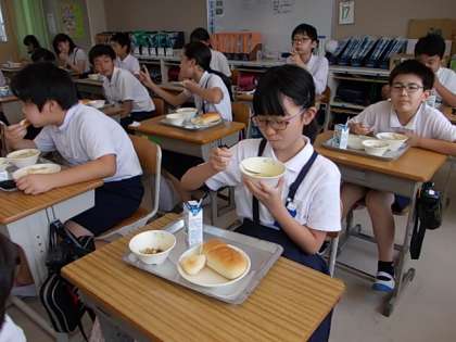 給食の時間が始まりました。みんなおいしそうに頂いています♪