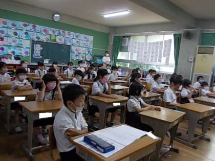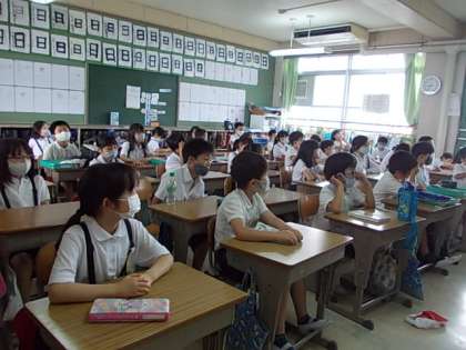 担当の先生から,生活目標「廊下の歩き方」についてのお話と,児童会から共同募金についてのお話がありました。