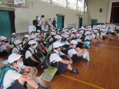 今日,5年生は旧堺市街地の中の自分たちで決めた施設をたくさん巡ります。教頭先生からは,「それぞれの施設で,また来てくださいと言ってもらえるような態度で見てこようね」とお話がありました。