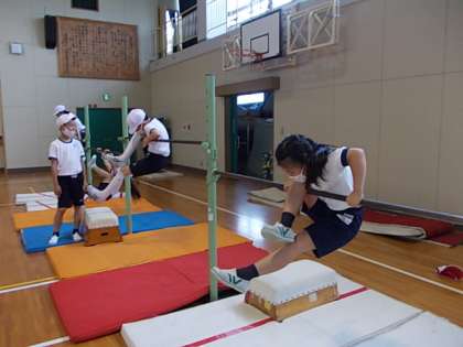 6月28日(月) 4年生体育「片ひざかけ回りにチャレンジ」♪