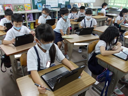 コンピューターを使って,算数の練習問題に取り組んでいました。いつも以上に,表情にやる気が表れているような。