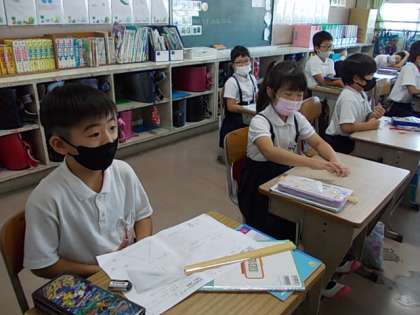 直角三角形の学習です。自分たちが持っている三角定規を使って学習を進めていました。