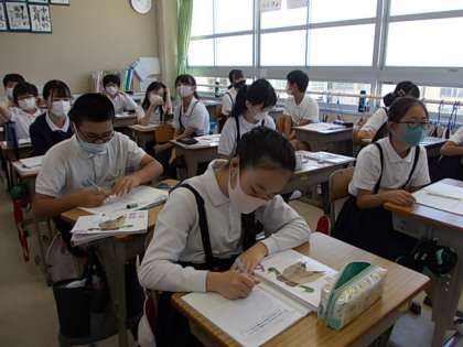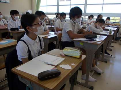 拡大図,縮図の学習です。対応する角の大きさや,対応する辺の長さを比べていました。