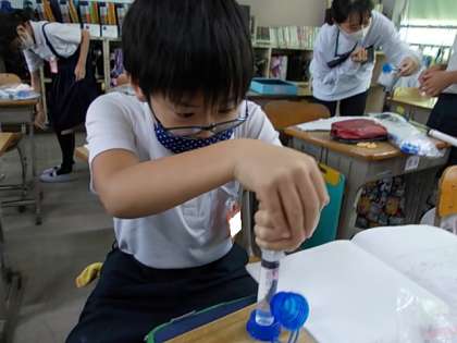 9月21日(火) 4年生理科「水は空気のように縮むのかな」♪