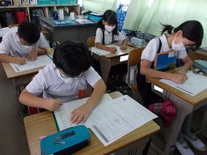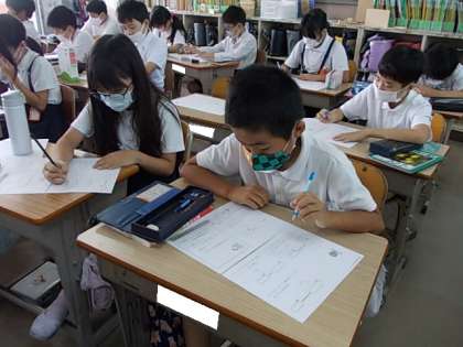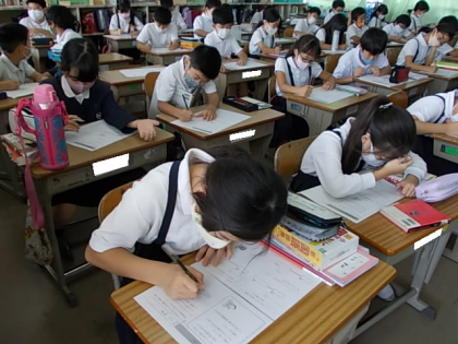今日は,週に一度の朝の学習タイムデー。4年生は文の構造についてのプリントに取り組んでいました。