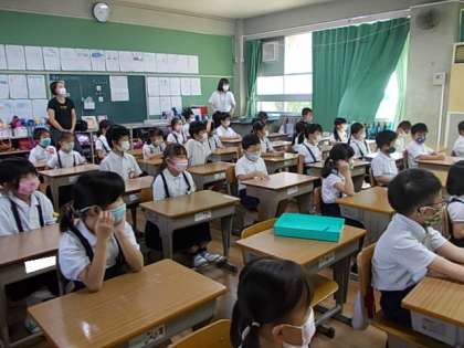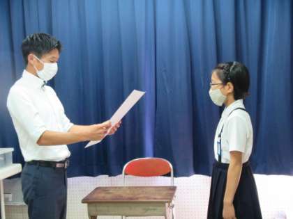 校長先生から,代表の6年生児童に賞状が授与されました。