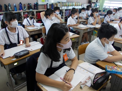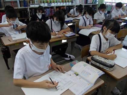 宿題の答え合わせ中です。「最近宿題が割り算ばっかりだ」という声がありました。