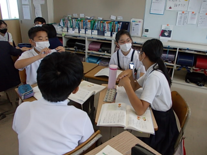 話し合いの学習です。自分の意見を伝えることだけでなく,友だちの意見を聞き,自分の意見とすり合わせ,全体の意見としていく学習です。