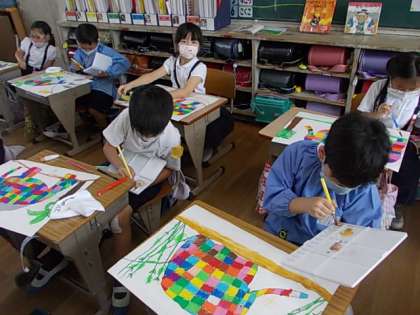 10月7日(木) 1年生図工「カラフルなエルマー」♪
