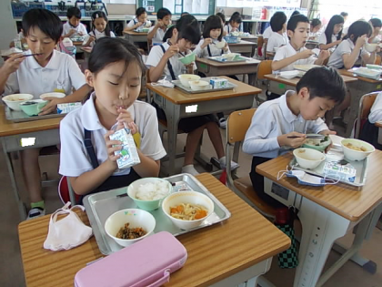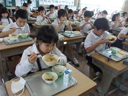 給食の時間が始まりました。今日もおいしくいただきましょう♪