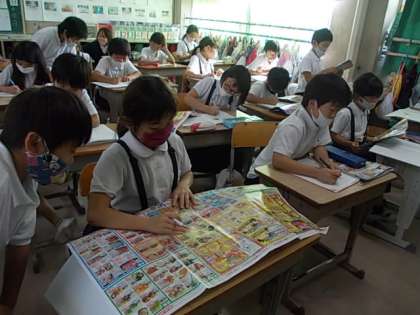 スーパーマーケットはたくさんお客さんに来てもらうためどんな工夫をしているのかな。今日は持ち寄ったチラシから探っていました。