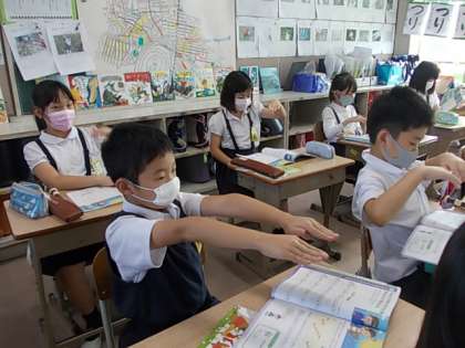 今日は「とどけよう このゆめを」を歌いました。旋律が上がっているのか下がっているのかを手の高さで表しながら歌いました。