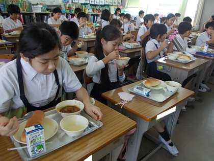 給食の時間が始まりました。今日もおいしくいただきましょう♪