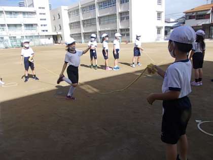 10月11日(月) 1年生体育「長なわに挑戦」♪