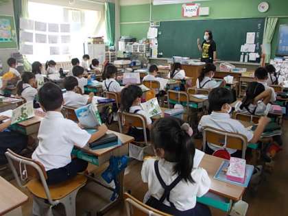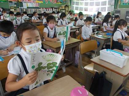 物語「くじらぐも」の学習です。物語全体を読み,だいたいの流れを確認しています♪