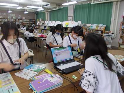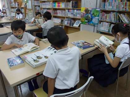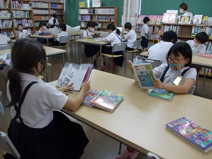 今日はどの本にしようかな。図書室には興味深い本がいっぱいですね♪