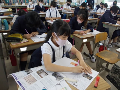 明日香方面への校外学習で知ったこと,感じたこと,考えたことなどを新聞の形でまとめています。みんな,集中して取り組んでいます♪