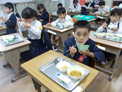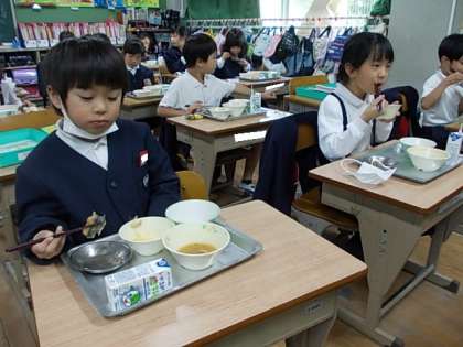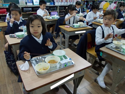 給食の時間が始まりました。今日もおいしくいただきましょう。