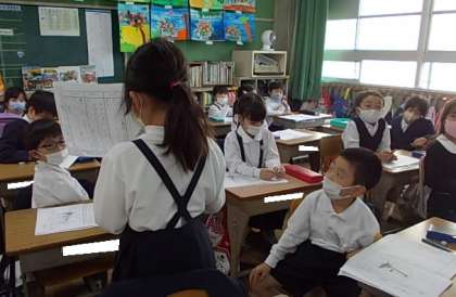 10月26日(火) 1年生国語「クレーン車のしごととつくり」♪