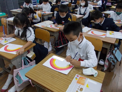10月26日(火) 1年生図工「色を混ぜて」♪