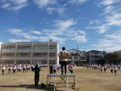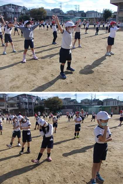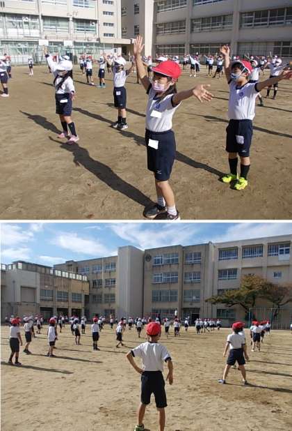 青空の下で,体育参観に向けた練習に取り組んでいました。気持ちがいいね♪
