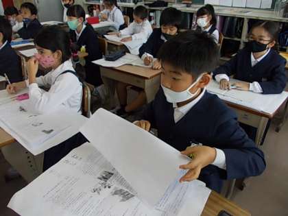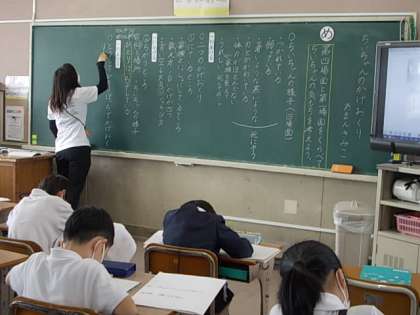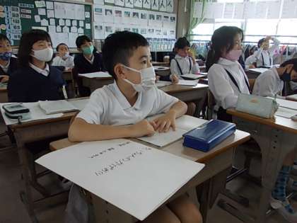 「ちいちゃんはなぜ,一人でかげおくりを始めたのかな」クライマックスシーンの学習です。みんなで自分の考えを伝えあっていました。