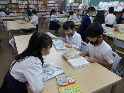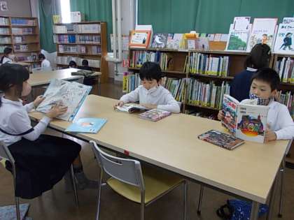 みんなが大好きな図書の時間です。今日はどんな本を借りようかな。