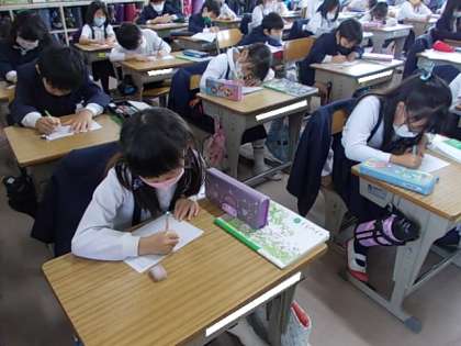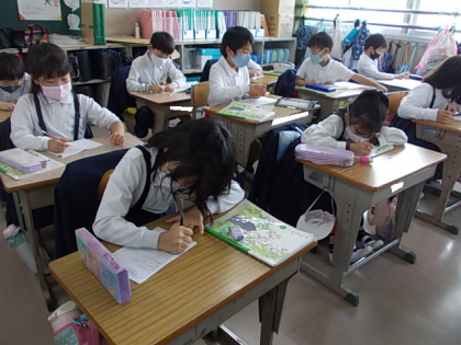 榎っ子「詩」コンクールの作品作りに取り組んでいました。しっかり考えて書いています♪