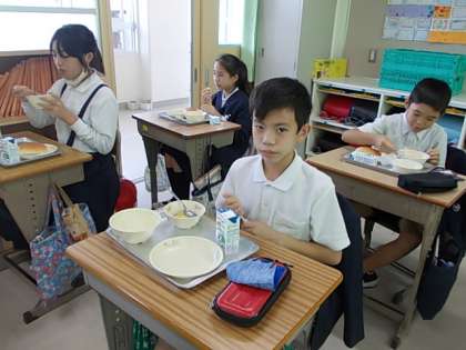 給食の時間が始まりました。今日もおいしくいただきましょう♪