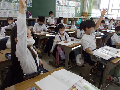 問題作りに取り組んでいます。作った問題を発表し,答えあっていました。