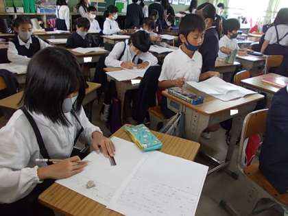 自分自身が興味を持った日本の伝統工芸品について,そのよさをアピールする文章を作ります。作ったものは3年生に読んでもらうことになりました。みんな,気合が入っています♪