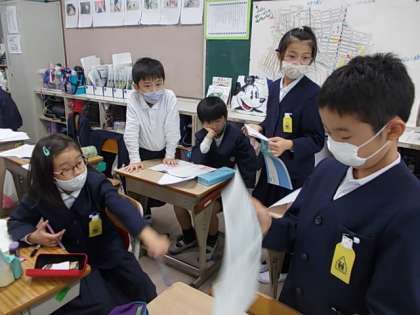 説明文「姿をかえる大豆」の学習です。今日はいろんな形で食卓に出される大豆について,工夫ととくちょうをまとめていました♪
