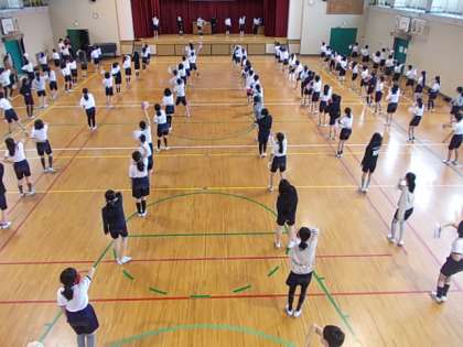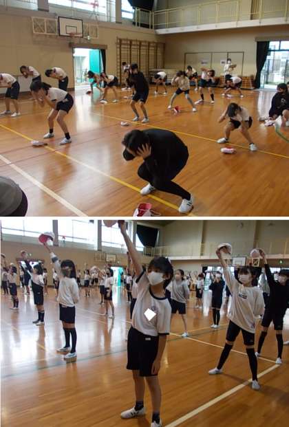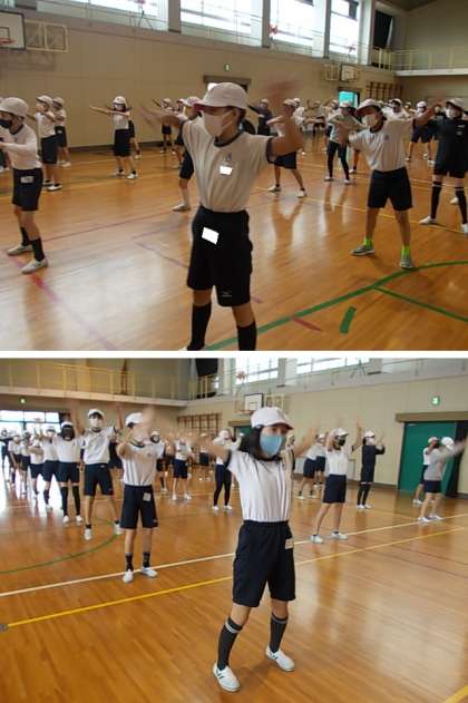 音楽をかけ,みんなで息を合わせて踊っています。自分たちで作り上げたダンスです♪